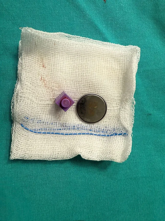 Kayseri'de 15 aylık A.Y.Ç.'nin yemek borusuna, evde oyun oynadığı sırada düğme pil ve lego oyuncak parçası kaçtı. O sırada yanında olan 4 yaşındaki kardeşi, 'Kardeşim lego yuttu' diyerek annesini çağırdı. A.Y.Ç.’nin ağızına bakan anne Tuğba Yılmaz, parçayı göremeyince dışkısından çıkacağını düşündü. Bir süre sonra A.Y.Ç.'nin yutma güçlüğü çektiğini gören Tuğba Yılmaz, Kayseri Şehir Hastanesi'ne başvurdu. A.Y.Ç.'ye yapılan röntgende, yemek borusunda düğme pil ve lego parçası oyuncağa rastlandı. Kız bebek A.Y.Ç., Kayseri Şehir Hastanesi Çocuk Cerrahisi ve Ürolojisi Anabilim Dalı Başkanı Doç. Dr. Mustafa Erman Dörterler ve ekibi tarafından ameliyata alındı. Yaklaşık 3 saatlik süren operasyonun ardından A.Y.Ç.'nin yemek borusuna kaçan düğme pil ile lego oyuncak parçası çıkarıldı.