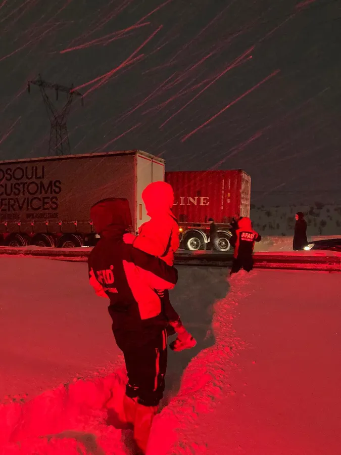 Kar yağışının yoğunlaşması nedeniyle ulaşıma kapanan Bolu/Gerede-Karabük-Çankırı/Çerkeş yollarında, Karayolları Genel Müdürlüğü ekiplerince yol açma çalışmaları aralıksız sürdürülürken, yolda kalan vatandaşlarımıza AFAD ve Kızılay ekiplerimiz tarafından gerekli destekler sağlanmaktadır. Bu kapsamda AFAD tarafından 178 personel ve 47 araç, Türk Kızılay tarafından ise 16 personel ve 4 araç, Bolu-Gerede, Karabük ve Çankırı-Çerkez'de sahada görev yapmaktadır. Yolda mahsur kalan vatandaşlarımıza 782 kumanya ve 600 battaniye yardımı yapılmıştır. Vatandaşlarımızın, başta buzlanma ve don olayına bağlı ulaşımda aksamalar ile yerde kar örtüsü olan yüksek ve eğimli alanlarda çığ riski gibi olumsuzluklara karşı dikkatli ve tedbirli olmalarını; yetkili mercilerin uyarılarını dikkate almalarını önemle hatırlatıyoruz. Gelişmeler takip edilmektedir" ifadelerine yer verildi.