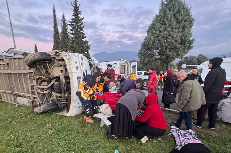Kaza, saat 08.00 sıralarında Aydın-Denizli kara yolundaki Yenipazar Kavşağı'nda meydana geldi. Fabrika işçilerini taşıyan S.Y.'nin kullandığı 09 P 1762 plakalı servis minibüsü devrildi. Kazada S.Y. ile 15 işçi yaralandı. Yoldan geçen diğer araç sürücülerinin ihbarı üzerine kaza yerine jandarma, sağlık ve itfaiye ekipleri sevk edildi.