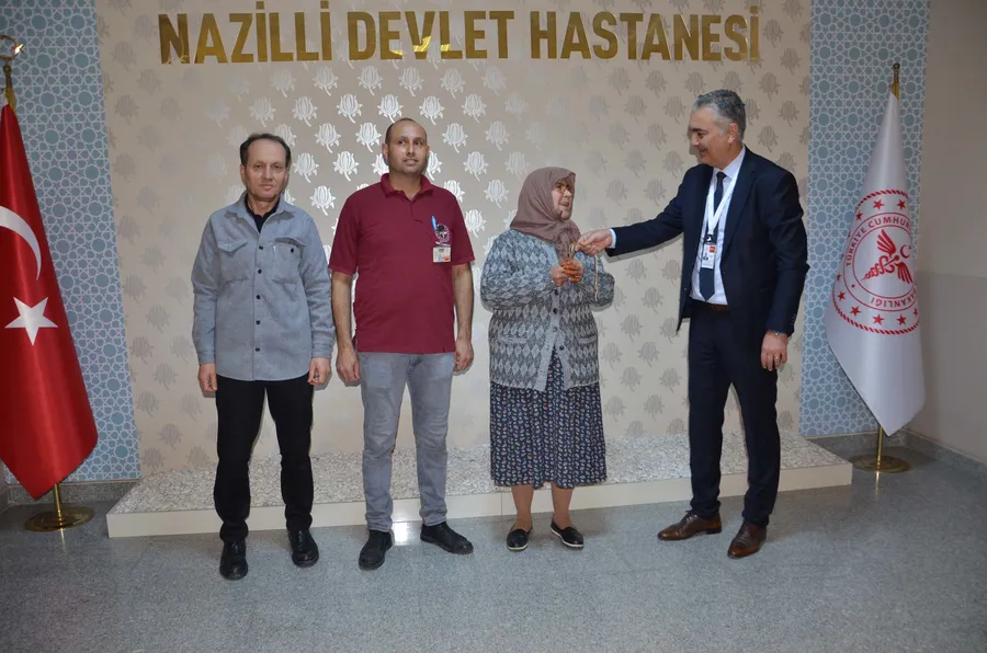 Nazilli Devlet Hastanesi'nde görevli temizlik personeli Ferdi Şimşek, hastane bahçesinde temizlik yaptığı sırada yerde 3 altın buldu. Şimşek, bulduğu altınları hastane idaresine teslim etti. Hastane yönetimi tarafından yapılan inceleme ve teyit işlemlerinin ardından, muayene olmak için Arslanlı Mahallesi’nden hastaneye gelen ve altınlarını düşürdüğünü bildiren Ayşe Gezgin’e altınları teslim edildi. Gezgin, “Altınları düşürmüşüm. Arkadaşlar bulmuşlar, Allah razı olsun. Bana teslim ettiler, çok sevinçliyim" dedi.