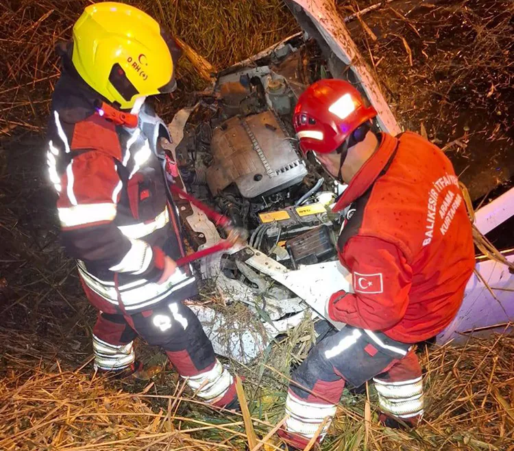 Yoldan geçen diğer araç sürücülerinin ihbarıyla olay yerine sağlık, polis ve itfaiye ekipleri sevk edildi. Araçta sıkışan sürücü O.P. ile yanındaki S.Ö, yaralandı. Yaralı 2 kişi, itfaiye ekiplerinin tarafından bulundukları yerden 40 dakikalık bir çaba sonucunda çıkarıldı. İlk müdahaleleri olay yerinde yapılan 2 kişi, Burhaniye Devlet Hastanesi'ne kaldırıldı.