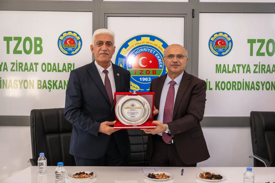 Türkiye Ziraat Odaları Birliği (TZOB) Yönetim Kurulu Üyesi ve Malatya Ziraat Odaları İl Koordinasyon Kurulu Başkanı Yunus Kılınç, Malatya Büyükşehir Belediye Başkanı Sami Er'e üreticilere sağladığı desteklerden dolayı teşekkür plaketi takdim etti.