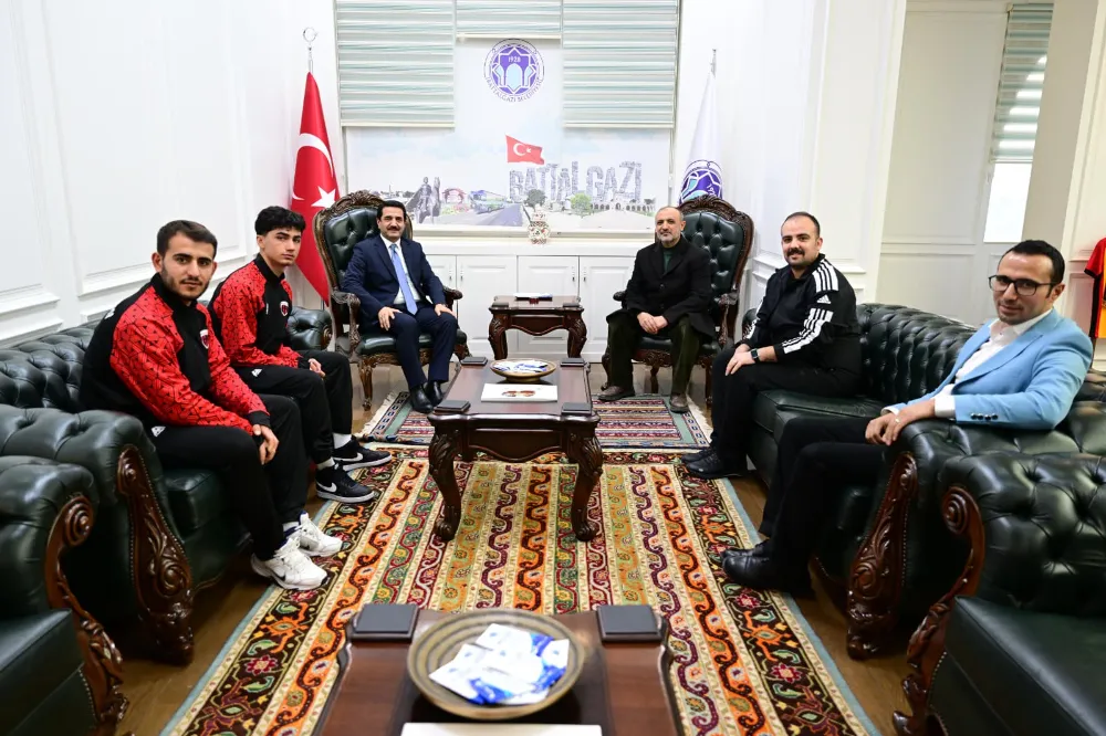 Battalgazi Belediyespor bünyesinde mücadele eden ve elde ettikleri başarılar sonucunda A Milli Futsal Takımı’na seçilen Salih Öndüç ile U19 Futsal Milli Takımı’na seçilen Yusuf Efe Ataş, Kulüp Başkanı Orhan Barman ve Futsal Takımı Antrenörü Burak Dönmez ile birlikte Battalgazi Belediye Başkanı Bayram Taşkın’ı makamında ziyaret etti. Belediye binasında gerçekleşen ziyarette, kulübün son dönemde futsal başta olmak üzere farklı branşlarda elde ettiği başarılar, altyapı çalışmaları ve genç sporcuların milli takımlara kazandırılması süreci ele alındı.