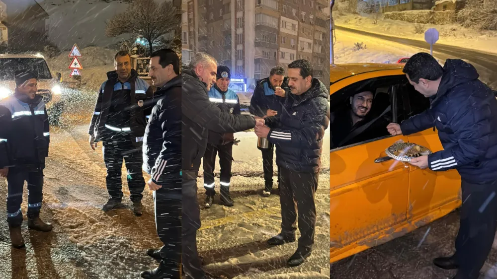Malatya’da etkisini artıran kar yağışı sonrası Battalgazi Belediyesi ekipleri ilçe genelinde kar küreme ve tuzlama çalışmalarını aralıksız sürdürürken, Battalgazi Belediye Başkanı Bayram Taşkın da gece saatlerinde sahaya indi. Orduzu Bahçebaşı başta olmak üzere birçok noktada görev yapan ekiplerle bir araya gelen Başkan Taşkın, çalışmaları yerinde inceleyerek personelle sohbet etti ve ekiplere sıcak çay ikramında bulundu.