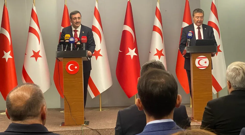 Cumhurbaşkanı Yardımcısı Cevdet Yılmaz, resmi temaslarda bulunmak üzere Kuzey Kıbrıs Türk Cumhuriyeti’ne (KKTC) gitti. Yılmaz, KKTC Başbakanı Ünal Üstel ile Ercan Havalimanı’nda ortak basın toplantısı düzenledi. Cumhurbaşkanı Yardımcısı Yılmaz, sözlerine, Kıbrıs Türk halkının egemenlik mücadelesinin öncü ismi merhum Doktor Fazıl Küçük’ü vefatının 42’nci yılında rahmet ve saygıyla anarak başladı. Son olarak KKTC'nin kuruluşunun 42’nci yıl dönümü vesilesiyle Cumhurbaşkanı Recep Tayyip Erdoğan'ı temsilen Lefkoşa’ya bir ziyaret gerçekleştirdiklerini anımsatan Yılmaz, "Bu kadar sık ve yoğun gündemle geçen karşılıklı ziyaretler ülkelerimiz arasındaki müstesna ilişkilerin ve KKTC’ye verdiğimiz önemin açık bir yansımasıdır. KKTC’ye ilişkin her gelişmeyi yakından takip ediyor, Kıbrıslı Türk kardeşlerimizin huzur ve refahı için yorulmadan çalışıyoruz. Bizim için KKTC'nin egemen eşitliğinin yanı sıra kalkınması da milli bir davadır. Hem onurlu, eşit, egemen bir ülke olarak varlığını sürdürmesi hem de kalkınması, ekonomik refahını artırması bizim için önemli, ana hedeflerdir. Bu çerçevede, başka bir takım ülkeler, çevreler ne derse desinler KKTC vatandaşları asla yalnız değillerdir. Her zaman yanlarındayız" dedi.