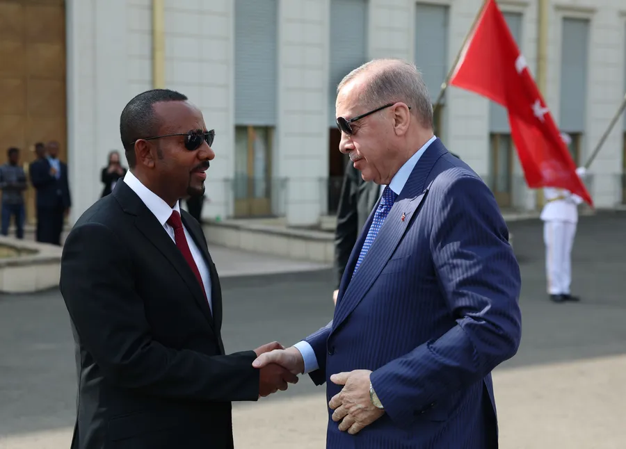 Cumhurbaşkanı Recep Tayyip Erdoğan, Addis Ababa'daki Ulusal Saray'a gelişinde Etiyopya Başbakanı Abiy Ahmed Ali tarafından resmi törenle karşılandı. Erdoğan ve Ali'nin tören alanındaki yerlerini almasının ardından iki ülke milli marşları çalındı. Heyetlerin takdiminin ardından iki lider baş başa görüşmeye geçti.