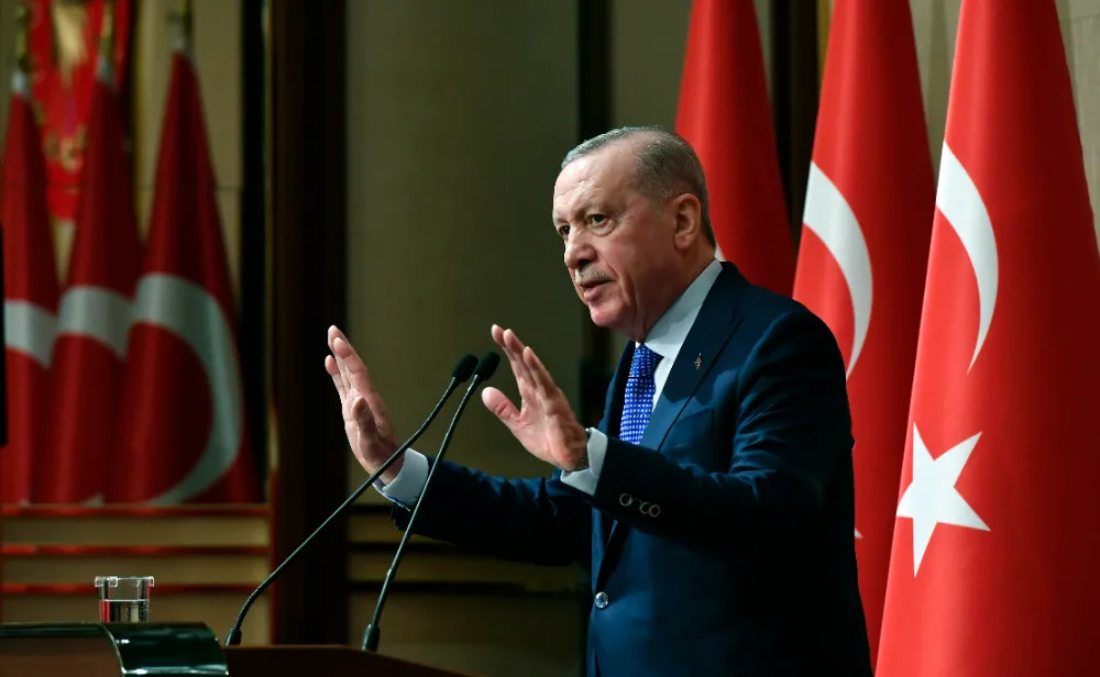 Suriye gibi aynı şekilde Gazze'de 70 binin üzerinde Filistinlinin öldürüldüğüne, 170 binin üzerinden yaralının olduğunu işaret eden Erdoğan, "Yıkıntıların altında ne kadar cenaze olduğunu kimse bilmiyor. Şu anda pek çok anne, pek çok eş, çocuk, annelerini, babalarını, eşlerini arıyor ya da onların akıbetlerine ilişkin haber almayı bekliyor. Sadece annesini, babasını, kardeşini değil, evini, okulunu kaybetmiş on binlerce çocuk, soykırımın canlı tanıkları olarak bugün enkazlar arasında Gazze’de hayata tutunmaya çalışıyor. Gazze’nin yüz ölçümü 365 kilometrekare. Yani Gazze derken İstanbul’da Beykoz, Ankara’da Mamak büyüklüğünde bir alandan bahsediyoruz. Soykırımdan önce Gazze’nin nüfusu 2,3 milyon civarındaydı. İşte böyle bir yerleşim alanına 200 bin tondan fazla bomba atıldı. Hiroşima’ya atılandan 14 kat daha fazla bombayla Gazze’yi yerle bir ettiler. Şimdi bu durumda biz nasıl işleyen, bu sorunlara çözüm üreten, adaletsizliği engelleyen bir uluslararası sistemden bahsedebiliriz? Mevcut küresel güvenlik ve yönetişim mimarisine nasıl güvenebiliriz? Resmin bütününe baktığımızda karşılaştığımız manzara şudur; uluslararası kurumların çoğu bugün, kendisini gassalın ellerine bırakmış meyyit misali cansız, duyarsız, hareketsiz ve işlevsiz vaziyettedir. Türkiye’nin hem kendi hak ve çıkarlarını layıkıyla savunabilmesi hem de dost, soydaş ve kardeşlerine yardım eli uzatabilmesi için ekonomik, askeri, diplomatik bakımdan güçlü olmak dışında bir seçeneği yoktur. Tecrübeyle sabit bu acı hakikat karşısında, biz de stratejilerimizi belirliyor, adımlarımızı planlıyor, yere sağlam basıyor, hiçbir işi şansa bırakmıyoruz" açıklamasında bulundu.