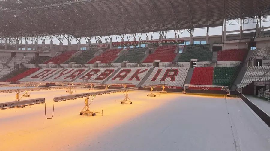 Hava sıcaklığının son 3 gündür sıfırın altında seyrettiği kentte, Diyarbakır Stadyumu’nda çimlerin don ve buzlanmadan zarar görmemesi için, 2 metre 20 santimetre yüksekliğinde, 4 ile 6 metre aralıklarla toplam 14 yapay güneş ışığı sistemine geçildi. Çimlerin sağlıklı kalması ve maçların oynanabilir durumda olması için ısıtma sistemleri aralıksız çalıştırılıyor.