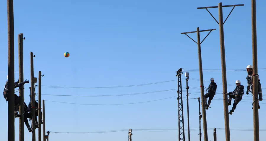 Yüksek gerilim hatlarında güvenli ve etkin müdahale kabiliyetini artırmak amacıyla yüksekte çalışma parkurları kuruldu. Antrenman sahasında ısınma hareketleriyle eğitime başlayan elektrik işçileri, daha sonra tırmandıkları direkler üzerinde voleybol oynayarak denge, koordinasyon ve güvenli hareket kabiliyetini geliştirmek için çalıştı. Bakım ve arıza süreçlerinde dron destekli kontrolleri de yaygınlaştıran kurum, erişimi zor bölgelerdeki hatları çok daha kısa sürede inceleyerek çözüme kavuşturmayı hedefliyor.