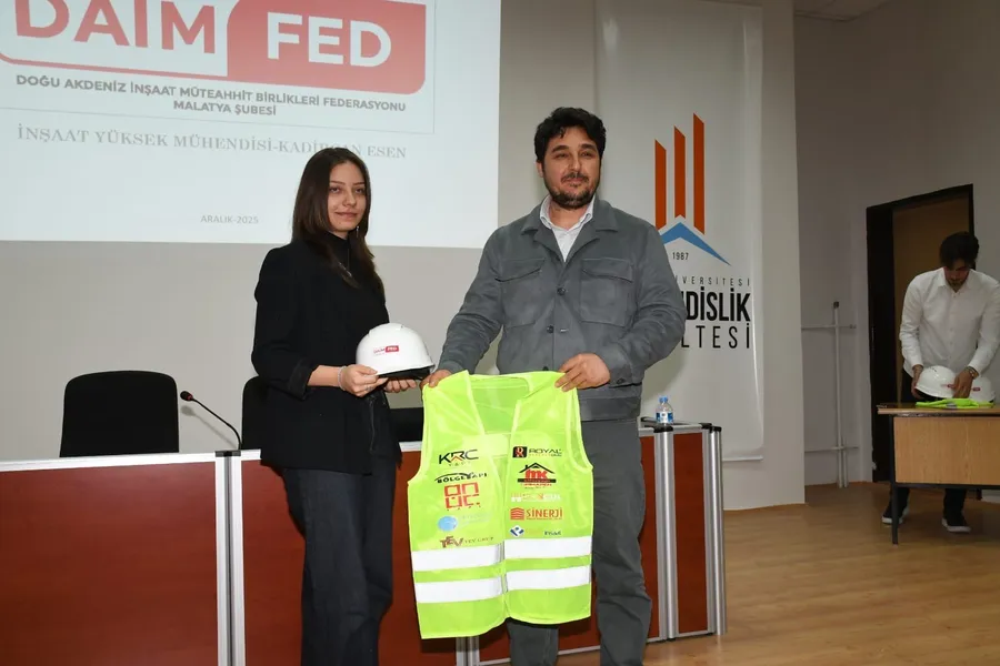 Malatya’da inşaat mühendisliği öğrencilerine yönelik mesleki farkındalığı artırmayı amaçlayan “İlk Baretim İlk Yeleğim” programı, İnönü Üniversitesi Mühendislik Fakültesi Konferans Salonu’nda düzenlendi. Doğu Akdeniz İnşaat Müteahhit Birlikleri Federasyonu (DAİMFED) ve üniversitenin Yapı Topluluğu iş birliğiyle hayata geçirilen etkinlik, sektörel uzmanların sunumlarıyla yoğun ilgi gördü.