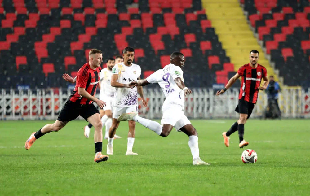 76’ncı dakikada Gaziantep FK’da Perez’in hatalı geri pasında topla buluşan Juan’ın kaleci ile karşı karşıya vuruşu auta çıktı.
