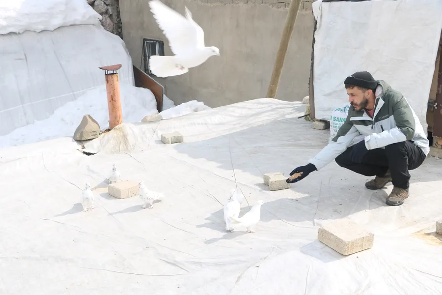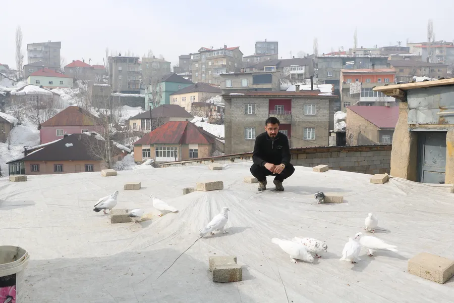 Hakkari'nin Yüksekova ilçesinde yaşayan Murat Çağatay, babasından miras kalan güvercin beslemeyi 20 yıldır sürdürüyor. Evinin damında 3 ayrı ırktan 50 güvercin besleyip eğiten Çağatay, "Onlarla vakit geçirmek beni rahatlatıyor" dedi.