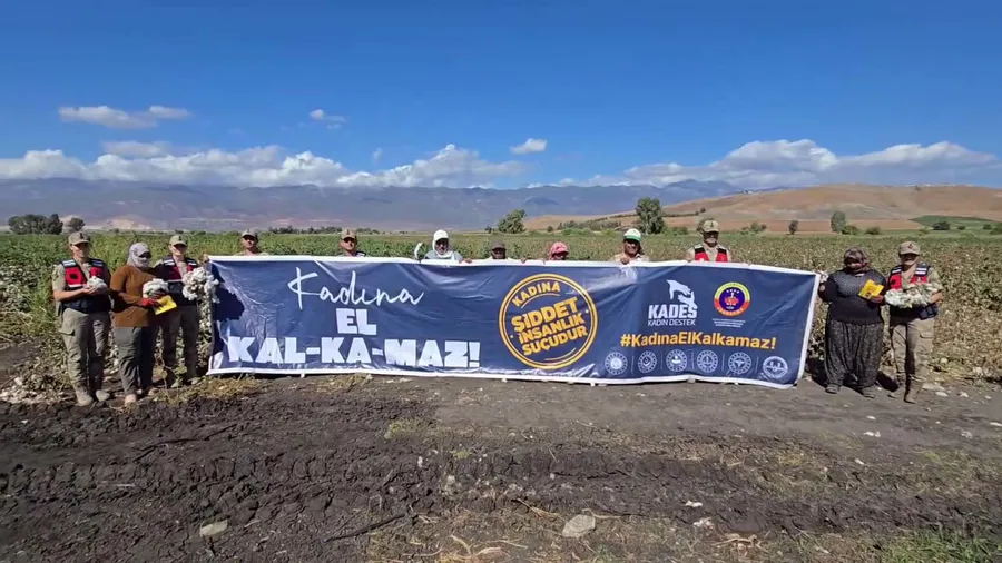 İl Jandarma Komutanlığı ekipleri, pamuk tarlasında çalışan işçileri ziyaret etti. Pamuk hasadı yapan kadınlarla sohbet eden jandarma, daha sonra birlikte hasat yaptılar. ‘Kadına şiddet insanlık suçudur, kadına el kalkamaz’ sloganı ile KADES uygulamasının önemi anlatan jandarma, kadına yönelik şiddetle mücadelede farkındalık oluşturuldu.