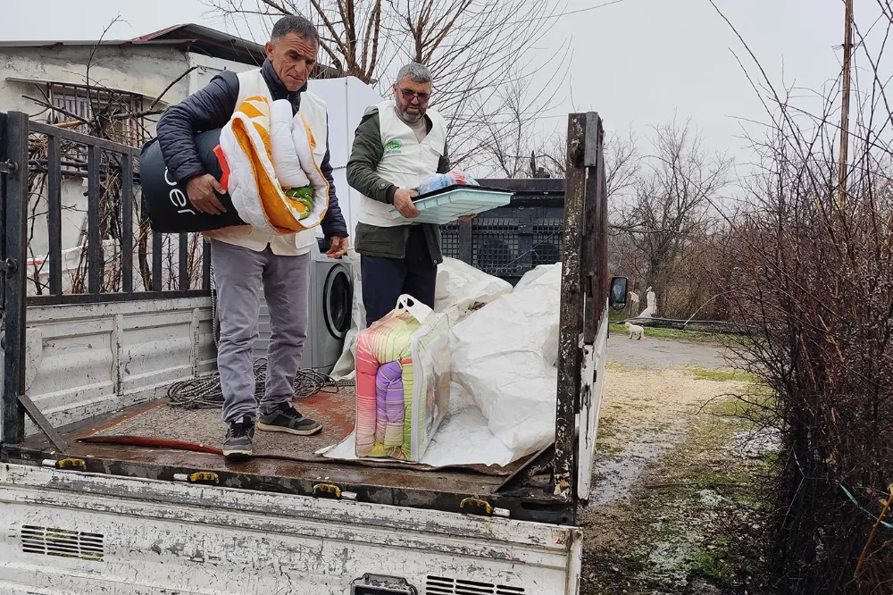 Yardım kapsamında aileye buzdolabı, çamaşır makinesi, halı, battaniye, yorgan, mutfak eşyaları ve gıda kolisi ulaştırıldı.