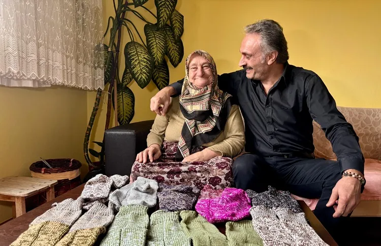 Annesi için iyi dileklerde bulunan herkese teşekkür eden Mahmut Kaldırım da "Araştırıyorum ve bulup ulaşabildiğim yerlere annemin ördüklerini gönderiyorum. Televizyonda kar altındaki askerleri görmek annemi etkiledi. Çorap örüp, göndererek bir nebze olsun ihtiyaçlarını gidermiş oluruz düşüncesiyle bu yola kendini adadı. Soğuk olan yerlere, askerlere, çocuk esirgeme kurumlarına, emniyetteki birimlere yolluyorum. Biz bir beklenti olmadan yaptık. Son 6 yıldır örgü işine daha da ağırlık verdi. Bini aşkın patik, çorap ve atkı örmüştür. Ben de gerekli malzemeleri alıp, ona veriyorum. Plaket göndermişler sağ olsunlar" dedi.