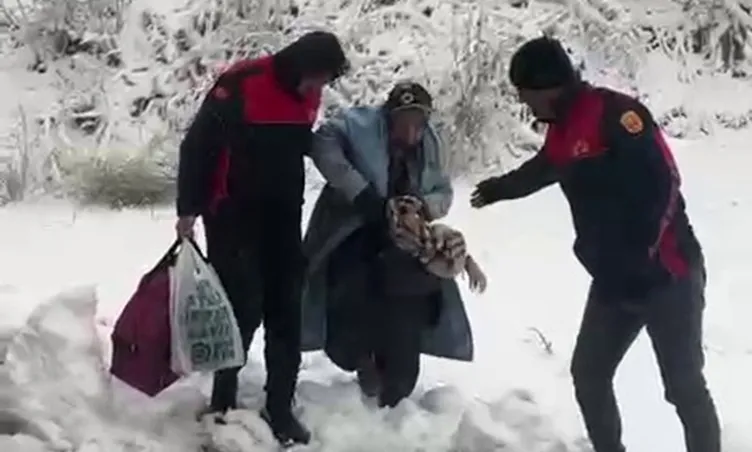 Metrelerce karla kaplı yolları açarak ilerleyen ekipler, Köşker’in bulunduğu eve ulaştı. Sağlık durumu kontrol edilen Döndü Köşker, güvenli şekilde bulunduğu yerden alınarak köy girişine indirildi ve ailesine teslim edildi.