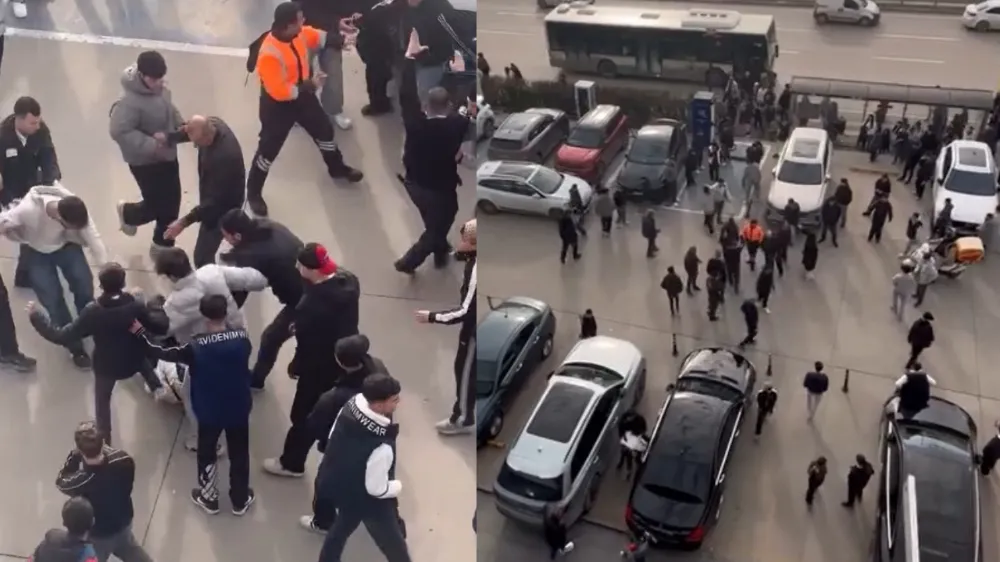Çevredekilerin araya girmesiyle öğrenciler olay yerinden hızla uzaklaşırken, o anlar cep telefonu kamerasıyla kaydedildi.