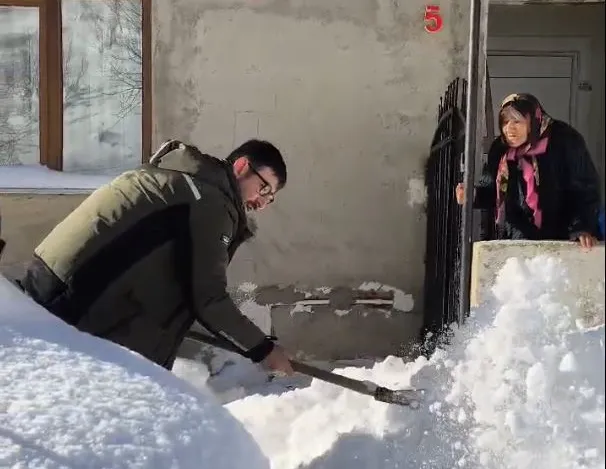 Başpınar, kürekle evin yolunu açarak Örnek'in dışarı çıkabilmesini sağladı.