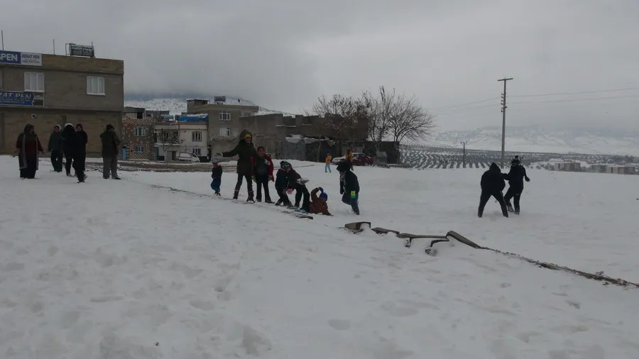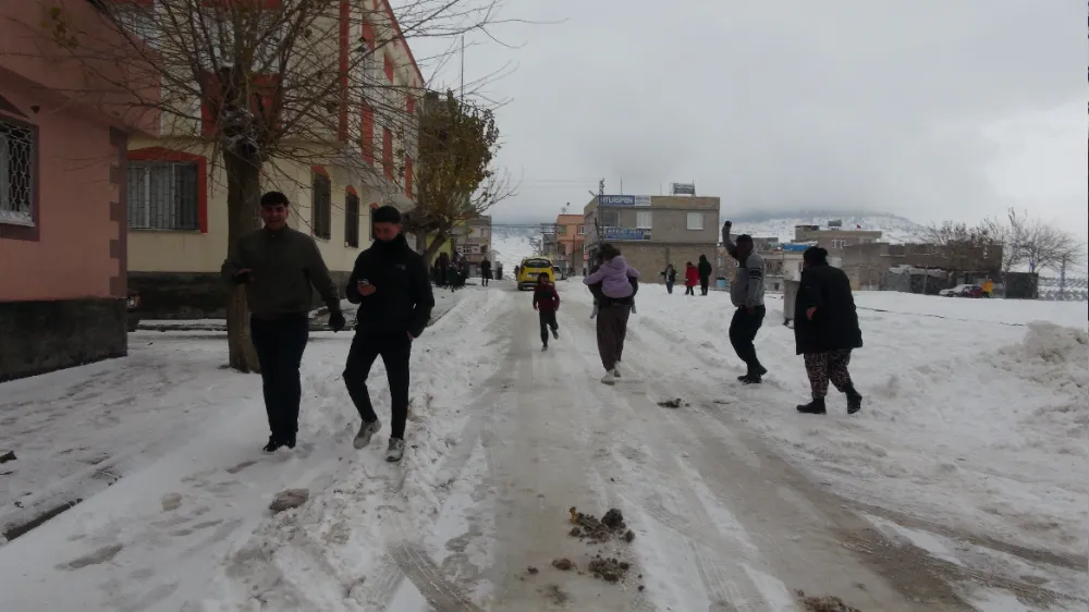 Çocuklar, aile bireyleriyle birlikte kar topu oynadı, kayarak eğlendi.