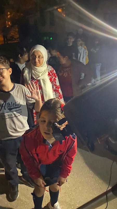 Buca'nın kırsal Karacaağaç'taki Türk Kadınlar Konseyi İlk ve Ortaokulu’nda görev yapan Fen Bilimleri Öğretmeni Muhammed Öner sosyal medya üzerinden Astrofotoğrafçı ve 'Tutulma Avcısı' Kubilay Akdemir ile iletişime geçti. Köy okulu öğrencileri için gelen talebi geri çevirmeyen Akdemir ekibi ile okula geldi. Dün akşam okul bahçesinde düzenlenen etkinliğe öğrenciler ve aileleri katıldı. Program kapsamında köy okulu öğrencilerine havacılık ve uzay bilimleri konularında sunumlar yapıldıktan sonra bilgi oyunları ve yarışmalar düzenlendi. Daha sonra öğrenciler sırayla Ay’ı izledi.
