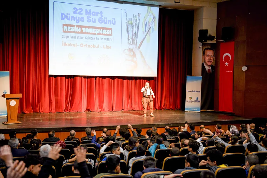 MASKİ Genel Müdürü Sinan Çeçen: “22 Mart Dünya Su Günü kapsamında düzenlediğimiz resim yarışmasının ödül töreninde sizlerle birlikte olmaktan büyük bir memnuniyet duyuyorum. Sevgili öğrenciler, bu yarışmada sizlerden suyun hayatımızdaki yerini ve önemini anlatmanızı istemiştik. Sizler de birbirinden değerli eserlerinizle suyun kıymetini ve karşı karşıya olduğumuz tehditleri etkileyici bir şekilde ortaya koydunuz. Şunu özellikle ifade etmek isterim ki; bugün ödül alan öğrencilerimiz kadar yarışmaya katılan tüm öğrencilerimiz bizim için birer kazanandır. Çünkü sizler, bu çalışmayla suyun önemine dikkat çekerek önemli bir farkındalık oluşturdunuz. Su, hayatın temelidir. Ancak günümüzde iklim değişikliği, artan nüfus ve bilinçsiz tüketim gibi etkenler su kaynaklarımızı tehdit etmektedir. Bu noktada siz gençlerimizin duyarlılığı bizler için büyük bir umut kaynağıdır. Kurum olarak amacımız; suyu koruyan, bilinçli nesiller yetişmesine katkı sağlamaktır. Bugün ortaya koyduğunuz eserler de bu hedefin ne kadar doğru bir yolda ilerlediğini göstermektedir. Bu vesileyle yarışmaya katılan tüm öğrencilerimizi tebrik ediyor; emeği geçen öğretmenlerimize, destek veren ailelerimize ve katkı sunan tüm kurumlarımıza teşekkür ediyorum.” dedi.