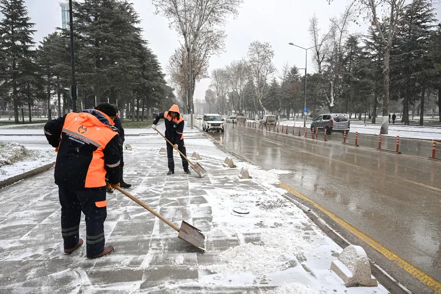 Kar yağışının yoğun olarak görüldüğü bölgelerde kar küreme ve buzlanmaya karşı çalışmalarını aksatmaksızın sürdüren Büyükşehir Belediyesi ekipleri, Malatya merkezde kar yağışı nedeniyle kaldırımlarda temizleme, buzlanmaya karşı solüsyonlama ve tuzlama çalışmalarına aralıksız devam ediyor.