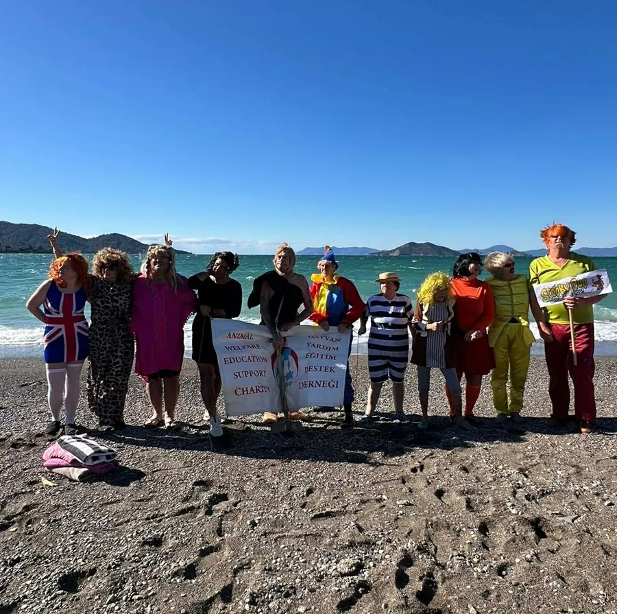 Fethiye ilçesinde yaşayan çoğunluğu İngilizlerden oluşan yerleşik yabancılar, yeni yılın ilk gününde yardıma muhtaç çocuklar ve sokak hayvanları için değişik kostümler giyip, Çalış Plajı’nda bir araya geldi. Yerleşik yabancılar, bağış toplamak için sıcaklığı 19.8 derece ölçülen denize girip yüzdü