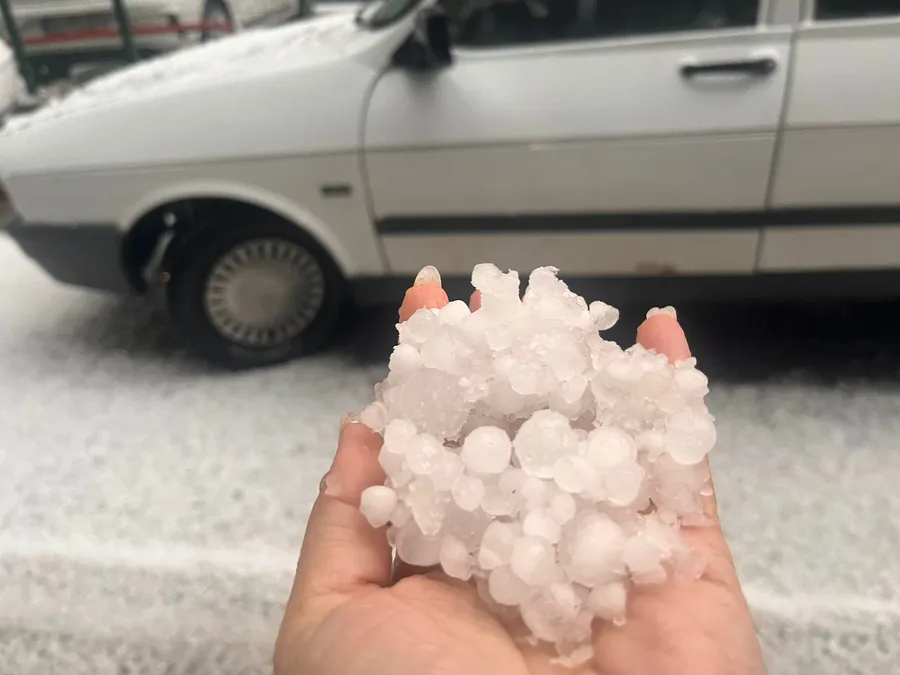 Meteoroloji Genel Müdürlüğü'nün uyarısının ardından ilçede dolu yağışı etkili oldu. Vatandaşlar yağış sırasında kapalı alanlara sığınırken, dolu yağışının ardından sokak ve caddelerde birikintiler oluştu.