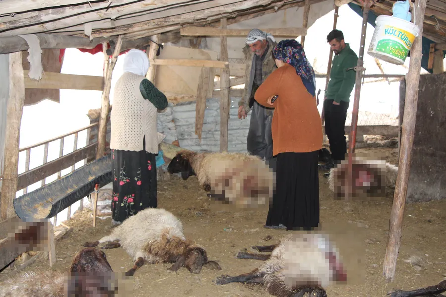 Olay, gece saatlerinde Yeşilyurt Mahallesi Rezuk mevkisinde meydana geldi. İddiaya göre; çadıra giren köpekler, koyun sürüsüne saldırdı. 28 koyun öldü, 15 koyun yaralandı. Hayvanların sahibi Azime Ertak, eşini hayatını kaybettikten sonra 8 çocuğuyla geçimini hayvancılıkla sağlamaya çalıştığını belirterek, "Maddi imkanlarımız olmadığı için ahır yapamadık, çadır kurabildik. Sabah çocuğumu arayıp, köpeklerin çadıra girdiğini söylediler. Geldik, 28 koyunun telef olduğunu, 15 koyunun yaralandığını gördük" dedi.