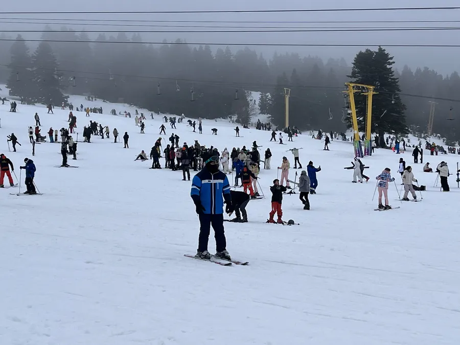 Kayakseverkerin ‘Beyaz cennet’ olarak tanımladığı Türkiye'nin ilk kayak merkezi Uludağ'da, hafta sonu ve sömestir nedeniyle yoğunluk yaşanıyor. Otellerdeki doluluk oranının yüzde 80 olduğu Uludağ’da kar kalınlığı 84 santimetre olarak ölçülürken, hava sıcaklığı en düşük 1, en yüksek 4 derece olarak kaydedildi. Güneşli havayı fırsat bilen tatilciler oteller bölgesine akın edince, kayak pistlerinde adım atacak yer kalmadı. Hem otellerde konaklayanlar hem de günübirlik olarak gelen kayakseverler, güneşli havada kayak yapmanın keyfini çıkardı.