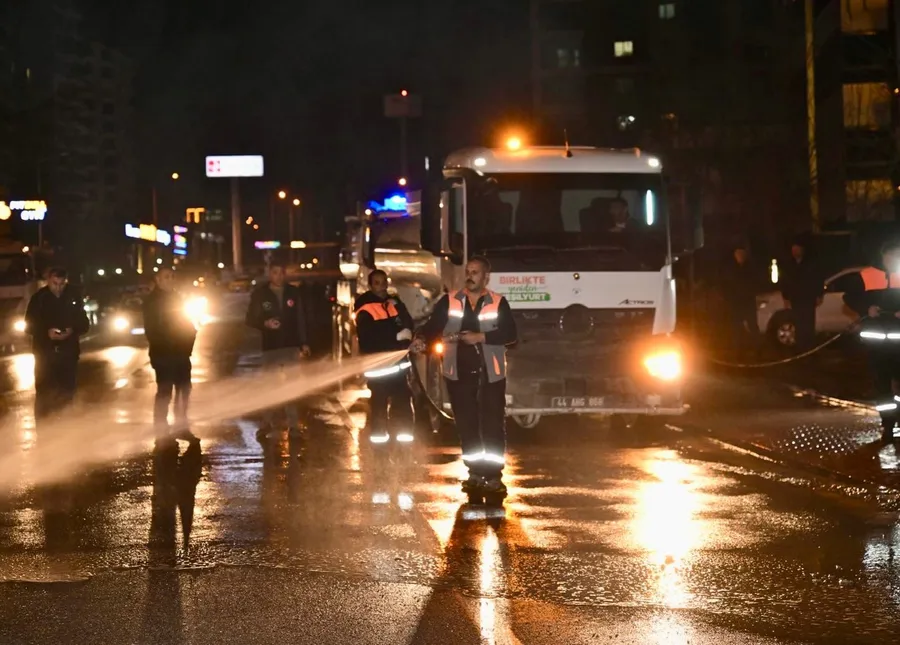 Yeşilyurt Belediyesi Temizlik Hizmetleri Müdürlüğü ekipleri tarafından gerçekleştirilen çalışmalarda ana arterler başta olmak üzere cadde ve sokaklar yıkanırken, kaldırımlar detaylı şekilde temizleniyor. Gece boyunca süren yoğun mesai ile ilçenin dört bir yanında kapsamlı bir temizlik çalışması yürütülerek yollar adeta pırıl pırıl hale getirildi.