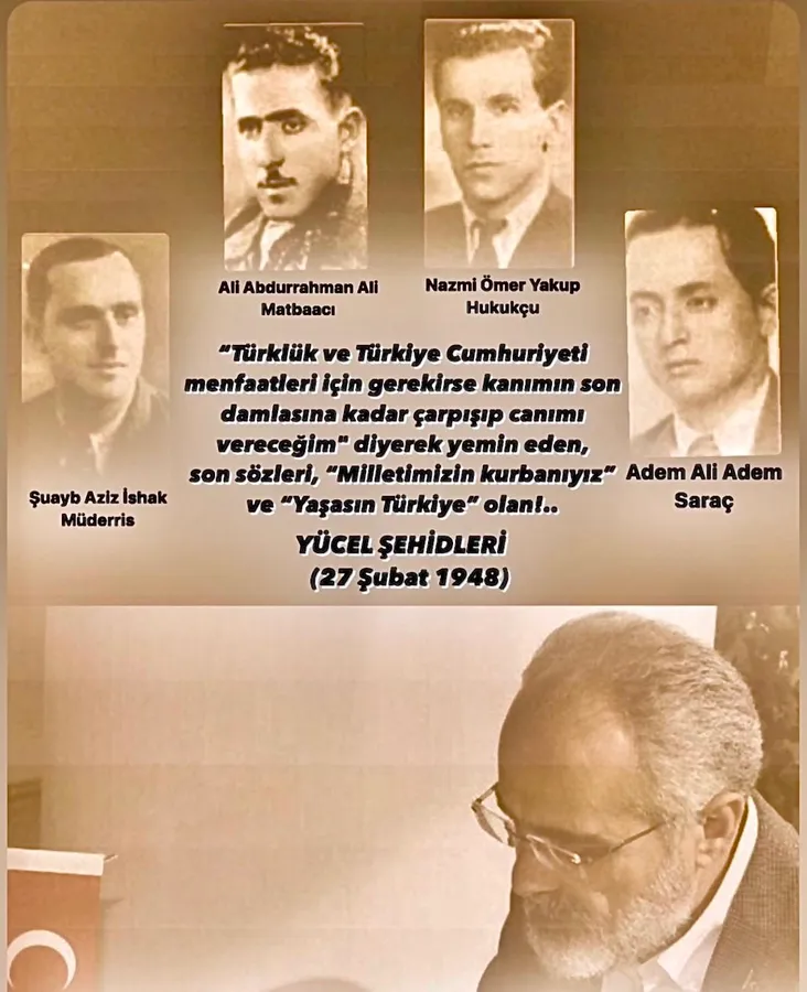 27 ŞUBAT 1948’de şehid edilen YÜCELCİLER’i,27 ŞUBAT 2020’de İdlib’de hain hava saldırısında şehid olan Mehmetçiklerimizi, D.Türkistan,Keşmir,Arakan,Kırım,Somali,Sudan’da ve Gazze’de yapılan soykırımın şehidlerini,27 ŞUBAT 2011 de vefat eden,bilim,devlet ve siyaset adamı 54.TC Hükümetinin Başbakanı Prof. Dr. Necmettin Erbakan Hocamızı saygı,