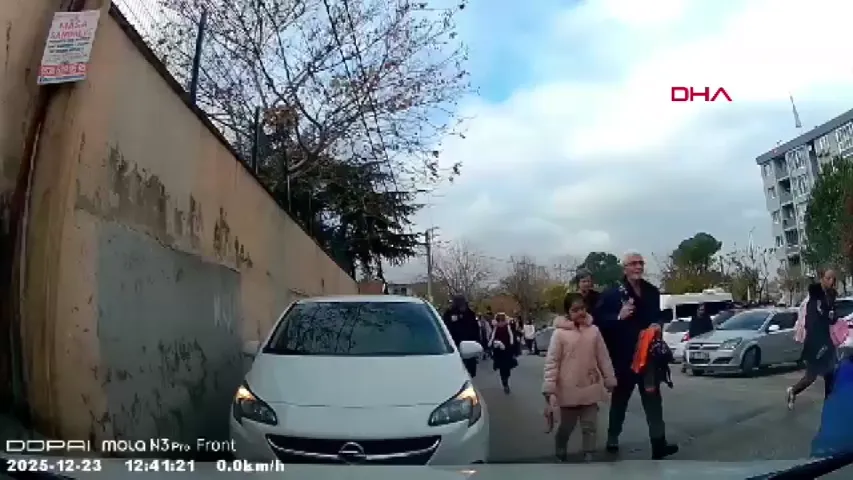 Olay, 23 Aralık'ta saat 12.00 sıralarında Yıldırım ilçesinde meydana geldi. Bir sürücü, okuldan çıkan öğrencilerin üzerine otomobilini sürdü. Öğrenciler ve veliler sürücüye tepki gösterirken, o anlar başka bir otomobilin araç kamerasına yansıdı.
