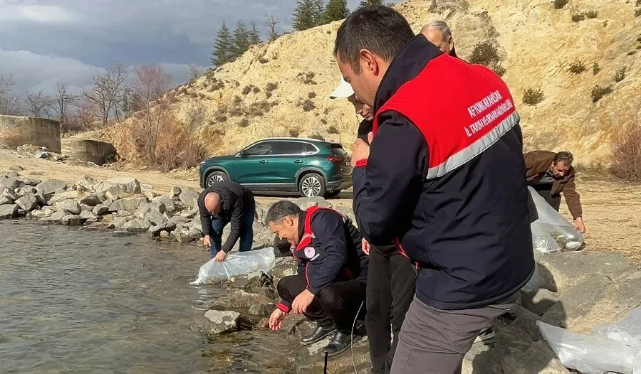 Afyonkarahisar'da su kaynaklarında azalan balık stoklarının takviyesi ve sürdürülebilirliğin sağlanması amacıyla yürütülen 2025 Yılı Su Kaynaklarının Balıklandırılması Programı kapsamında, Akdeniz Su Ürünleri Araştırma, Üretme ve Eğitim Enstitüsü Müdürlüğü tarafından üretilerek Afyonkarahisar'a tahsis edilen 798 bin sazan yavrusu bırakıldı.
