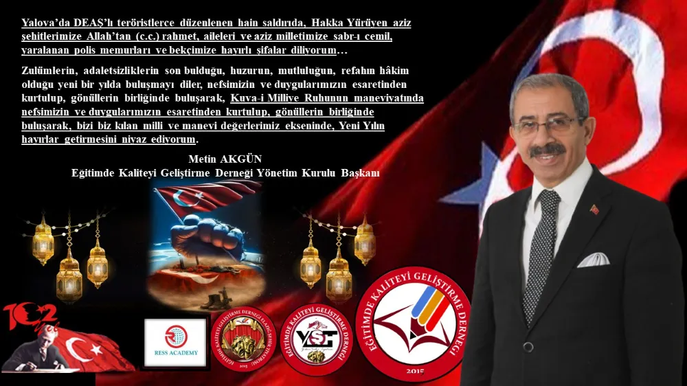Yeni Yıla girişin duygusallığını, geleceğe dönük hayallere dayalı beklentilerini yaşarken, Yalova’da, Terör örgütü DEAŞ’a yönelik gerçekleştirilen operasyonda; DEAŞ’lı teröristlerce düzenlenen hain saldırıda 3 kahraman polisimizin, (Polis memuru İlker Pehlivan, Polis memuru Turgut Külünk Polis memuru Yasin Koçyiğit) kahraman emniyet mensuplarımızın şehit düştüğünü, bu elim olayda sekiz polis memuru ile bir bekçimizin yaralandığını öğrendik.