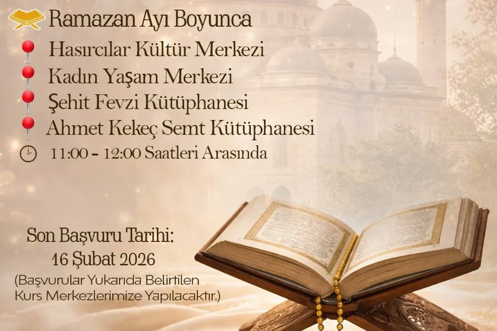 Ramazan ayı boyunca gerçekleştirilecek mukabele okumaları; Hasırcılar Kültür Merkezi, Gelinciktepe Kadın Yaşam Merkezi, Şehit Fevzi Kütüphanesi ve Ahmet Kekeç Semt Kütüphanesi’nde yapılacak.
