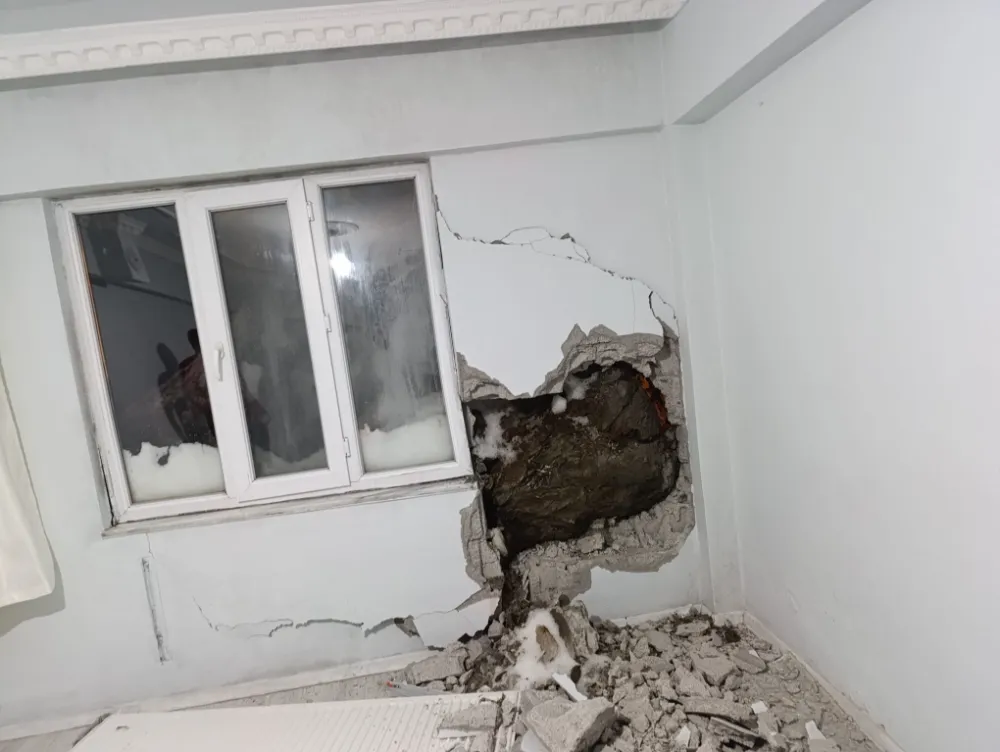 Bu sırada evin salonunda oturanlar ise büyük korku ve panik yaşayarak kendilerini dışarı attı. İhbar üzerine adrese AFAD, polis, itfaiye ve sağlık ekipleri sevk edildi. Ekipler, yeni kaya düşme riskine karşı evi tahliye edip, çevresine güvenlik şeridi çekti. AFAD ve itfaiye ekipleri evde hasar tespit çalışması yaptı.