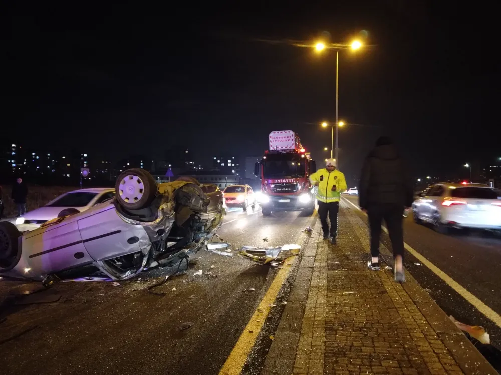 Kaza, saat 21.00 sıralarında Melikgazi ilçesi Hulusi Akar Bulvarı'nda meydana geldi. M.O.G. yönetimindeki 38 HS 116 plakalı otomobil, sürücüsünün kontrolünü yitirmesi sonucu takla atarak karşı şeride geçip, N.Y. kontrolündeki 38 T 1582 plakalı taksiyle çarpıştı. Çevredekilerin ihbarı üzerine kaza yerine polis ve sağlık ekipleri sevk edildi. Kazada, her iki aracın sürücüleri ile takside yolcu konumundaki bir kişi yaralandı.