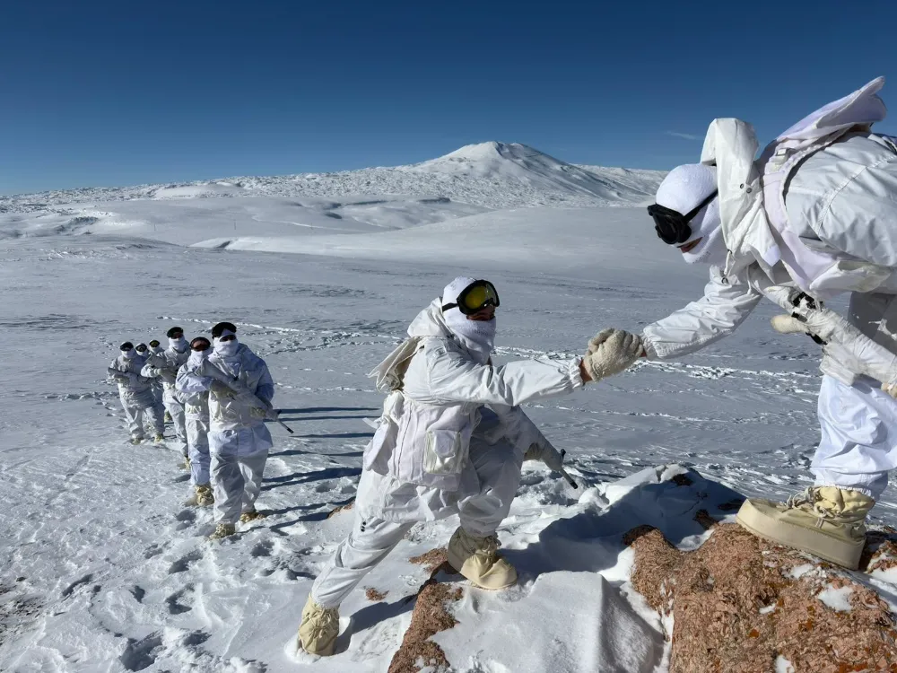 Mehmetçiğin, kış şartlarına uyumlu kamuflajları ile karla kaplı dağlık arazide devriye görevi icra ederken çekilen fotoğrafları da paylaşıldı