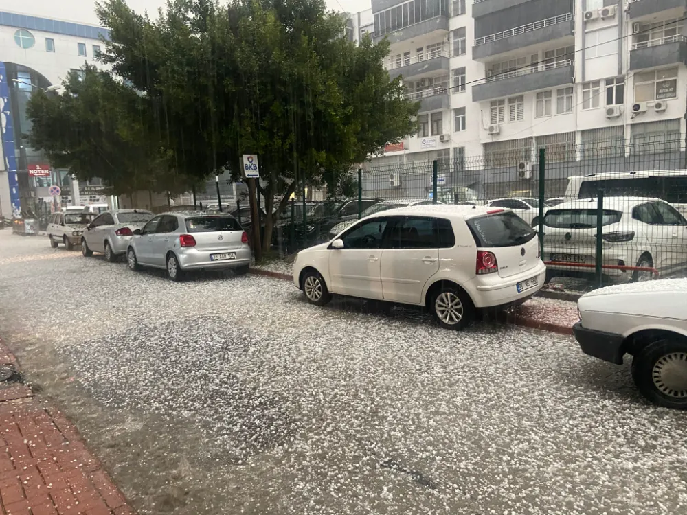 Meteoroloji Genel Müdürlüğü'nün uyarısının ardından ilçede dolu yağışı etkili oldu. Vatandaşlar yağış sırasında kapalı alanlara sığınırken, dolu yağışının ardından sokak ve caddelerde birikintiler oluştu.