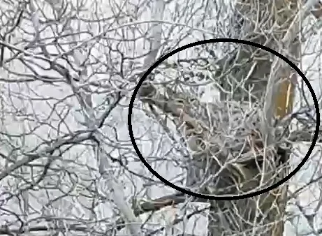 Yıldızeli ilçesine bağlı Çağlayan köyü kırsalında gezintiye çıkan kişi, bir ağacın üzerinde nesli tükenme tehlikesi altında bulunan vaşağı fark etti. Yaşam alanı olarak daha çok dağlık ve kayalık bölgeleri tercih eden vaşağın ağaçta dinlendiği görüldü. Bir süre sonra vaşak, ağaçtan inip gözden kayboldu.