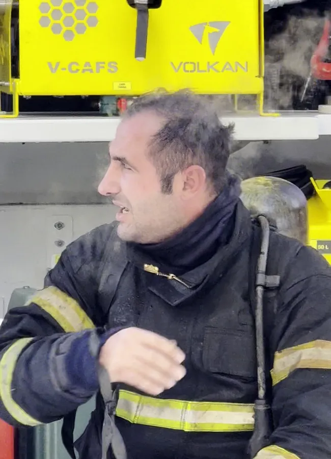 Pınar'ı yanan evden alıp çıkan itfaiye ekibindeki, maskesini çıkaran erin baş kısmından yoğun buhar yükseldiği görüldü. Nefes nefese dinlenmeye çalışan itfaiye erinin arkadaşlarına "Omuz başlarım yandı" dediği duyuldu. O anlar, kameraya yansıdı.